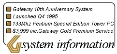 To be fair to Gateway, most of the above can (and did) happen with plenty of other PC configurations, and that is why Gateway had a support system for their customers. The reason this particular system has been highlighted is because it not only cost a premium and included Gateways “Gold Premium Service” offering, it failed to deliver on two important fronts; the first is from a PR perspective, it is a special configuration that Gateway decided to advertise specifically to shout about its 10 years in the PC business and offer the customer a product “designed with the computer connoisseur in mind” (direct quote from the “Born in a Barn” Ad -