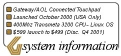The Gateway Connected TouchPad was built in collaboration with AOL as a vehicle to push AOL into more homes via Gateway hardware. During this time, the buzz words were “Connected PCs” that connected to the Internet for services, spurning another offspring, the “Net PC”. Both concepts were “light” PCs which required the Internet to power the local software features. A number of manufacturers got burnt with these Net PC concepts during the early 2000s and clearly the market wasn’t there for these early connected devices.