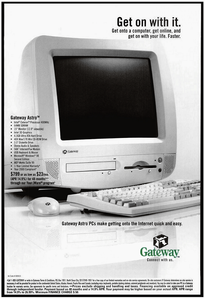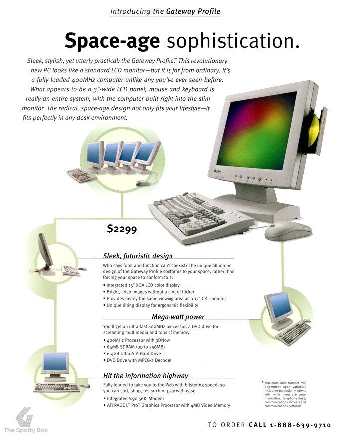 Seeing as Apple had reinvented the home computer with its new iMac range, many PC makers hurried to grab a piece of the pie with their own versions. With Apple’s lawyers already talking to some of their competitors, citing similarities with their own designs, Gateway decided to stay as far away from the iMac comparison as they could, but it was an obvious PC-