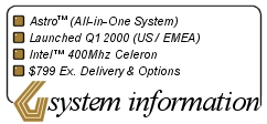 The Astro didn’t last long, and was killed off by Q4 2000. It had a few teething problems, and apart from being heavy (nearly 20kg / 44lbs), it was practically obsolete when it came out. A sku with either a “Rug Rats” or “Blues Clues” bundle was also made available for just under $900 to clear inventory. It had meant to come with an AMD CPU, but the powers that be were “persuaded” that an Intel CPU would be better! It was a good effort, but like many of the PC makers of the era, they were too slow to react to the iMac and lost out to simply great PR and advertising from the guys in Cupertino.
