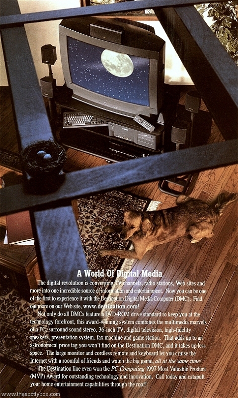 The Destination was reconfigured a few times, and the case changed to accommodate front port connections. A 36” CRT was also launched in ‘97, as well as software upgrades and options. It got varied reviews, and the consumer market wasn’t entirely ready for the concept. Needless to say, it was quietly pushed as an educational tool and for corporate board rooms probably to