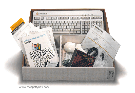 The Gateway “Pizza” box was the first box you would see when you opened your famous outer Spotty Box! It was filled with all those acres of forest manuals and leaflets before CD’s and DVD’s replaced them.